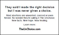 for post-abortion counseling referrals, call 1-877-HOPE-4-ME or click here.