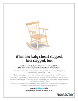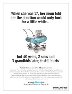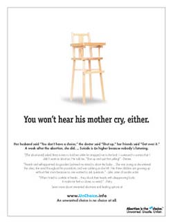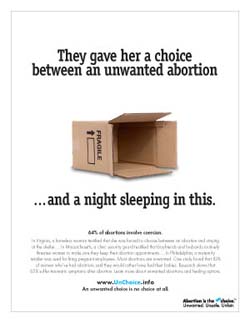 On this page ... The UnChoice campaign and supporting materials are based on new but seldom-reported pro-woman/pro-life evidence that changes fundamental public attitudes about abortion. To be effective, most of the ads shown on this page should be used as part of a larger "big picture" campaign in your community. (Learn more in Ads 101.)