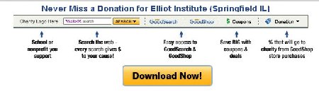 This automates the process so that every time you search or shop online a percentage goes back to the Elliot Institute, without going through the GoodSearch site every time. Once you download the toolbar, you'll see the amount to be donated flash in the corner of the toolbar.